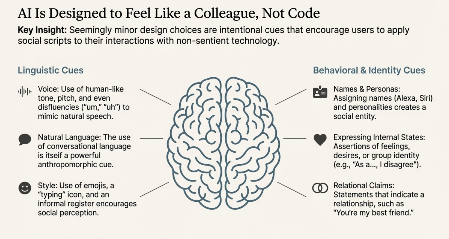 Researchers call it “anthropomorphism,” which is a big word for a simple mistake: giving human feelings and intentions to something that is just a machine. For us experienced professionals, this slip of the tongue is actually a serious business risk because it tricks us into trusting the system more than we should.